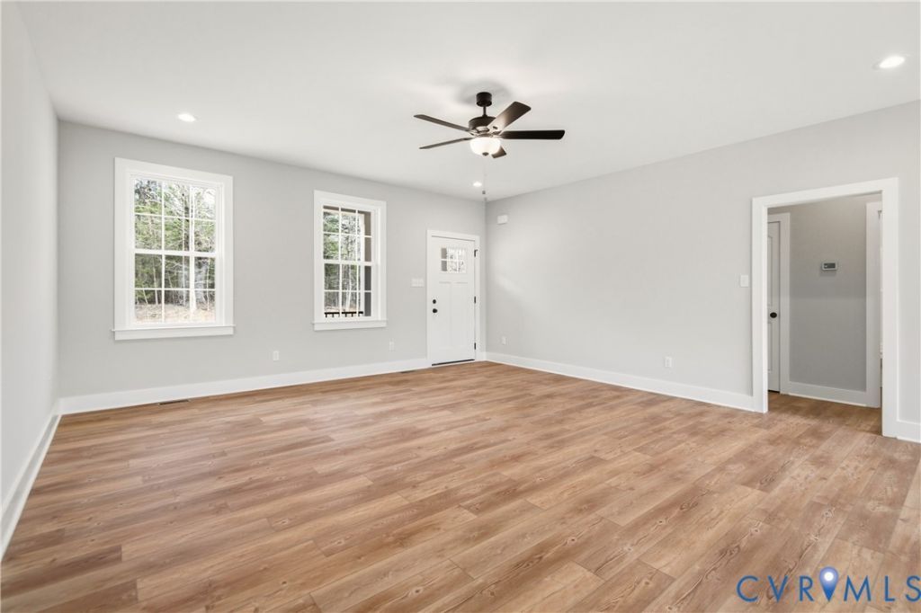 Modern country luxury by Oak Hill Homes! This pristine Redwood model is nestled on a private lot of almost 1 acre, offering a seamless blend of sophisticated design and serene rural living. As you step inside, the layout reveals soaring 9 foot ceilings and gorgeous luxury vinyl plank flooring that extends throughout the entire residence. The heart of the home is a chef-inspired kitchen featuring bespoke white shaker cabinetry with soft-close hinges and upgraded level C quartz countertops. A generous peninsula provides a natural gathering spot for morning coffee or casual entertaining, overlooking the sun-drenched family room. High-end Samsung stainless steel appliances and matte black hardware add a sleek edge to the functional interior. Large, energy-efficient double-hung windows flood the space with natural light while providing views of the surrounding greenery. The primary suite serves as a tranquil getaway, boasting a large walk-in closet and a private bathroom with an oversized 5 foot fiberglass shower. Two additional versatile bedrooms offer plenty of room for guests or a quiet home office. Beyond the interior, the deep front porch and ten-foot rear deck invite you to enjoy the fresh air and expansive, cleared yard. Superior construction is evident in the brick foundation, finished 2 car garage with level one sheetrock, and high-efficiency Trane HVAC system ensuring year-round comfort. This property places you in a prime location to experience the best of Powhatan. Spend your weekends exploring the scenic trails and river access at Powhatan State Park or enjoying the athletic facilities at Fighting Creek Park. The historic Courthouse Village is just a short drive away, offering a unique selection of local boutiques, community events, and dining options. With a perfect mix of contemporary features and a quiet country atmosphere, this new construction provides an unparalleled living experience. Schedule your private tour of this exceptional property and imagine the possibilities of your new lifestyle!