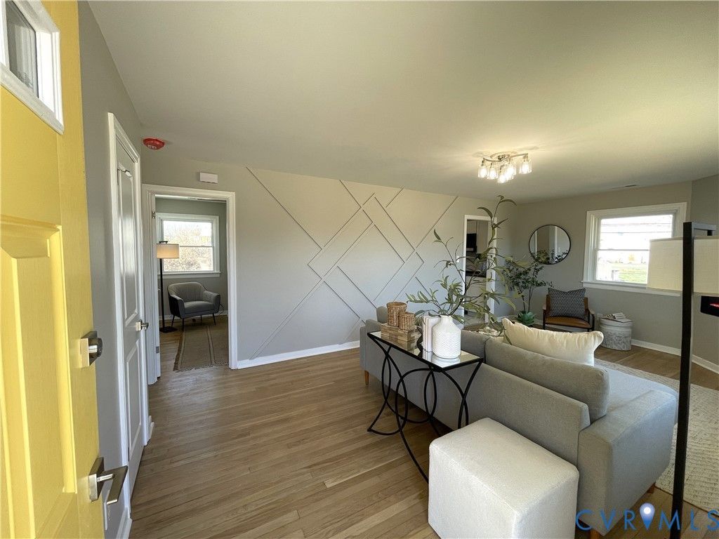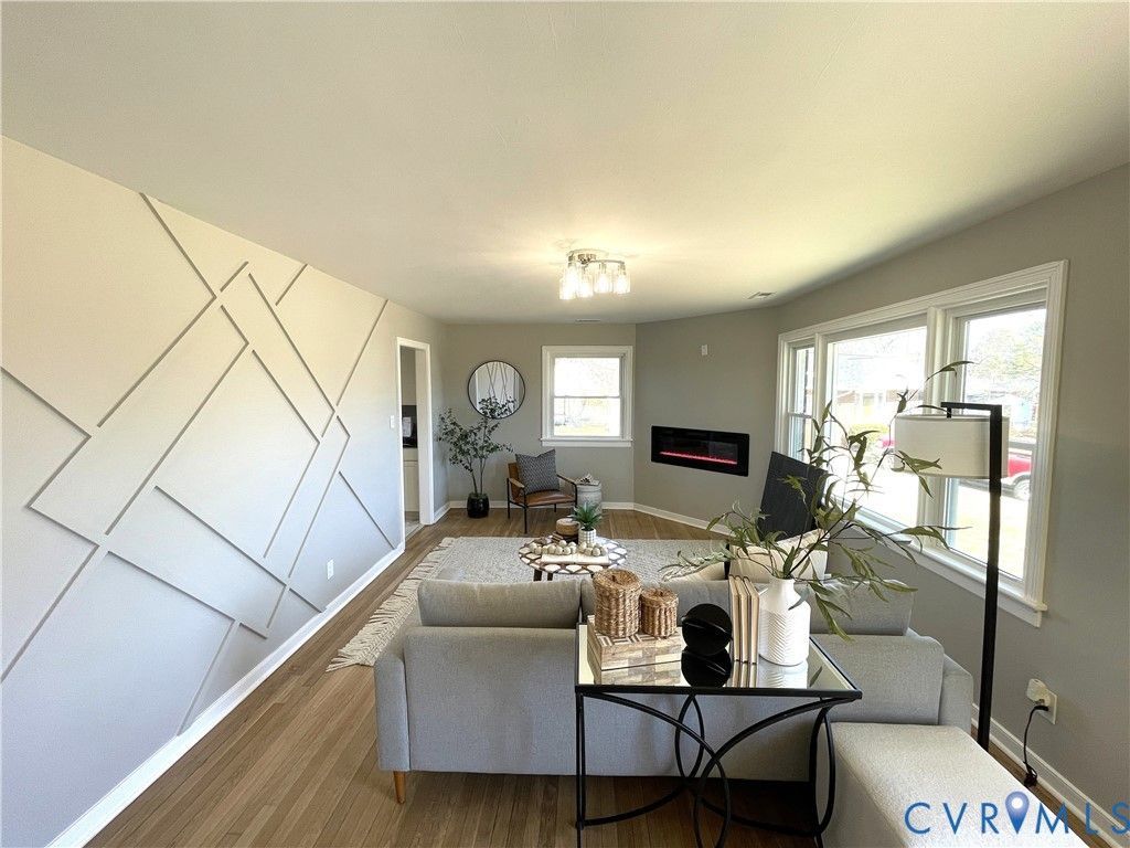 Welcome home! No stone has been left unturned in creatively and meticulously transforming this home into an aesthetic and warming masterpiece you'll enjoy and treasure for years to come. Nestled in a cul-de-sac, this practically like-new home offers thoughtful and expansive upgrades that imaginatively blend the sturdiness and quality build of an older home with wonderful eye-catching, show-stopping modern conveniences. This stunning brick home offers a new asphalt shingle roof, custom paint inside and outside of the home, LED motion lights at the front and rear of the home, and handles (no knobs!) at all new interior and fiberglass exterior doors. Upon opening the front door, you'll be swept away by the beautiful, refinished hardwood floors, picturesque accent wall, and dazzling electric fireplace. Ample natural lighting floods the living room from its many windows, all of which are new throughout the home, and, as an added touch, the wall above the fireplace has been reinforced just in case you'd like to mount a TV. The kitchen boasts new raised panel cabinets with soft close drawers and doors, granite counters, custom backsplash tile, new luxury vinyl tile flooring, stainless steel appliances, and a banquette for seating and additional storage. All of the bedrooms have new ceiling fans and refinished hardwood floors. The primary bedroom, however, has an added wow factor - a 43' TV mounted on a remote-control hinge above the newly installed barn door. The en-suite bathroom in the primary bedroom was creatively imagined with a shower stall that features unique, almost mural-like tile, and an oversized showerhead and hand-held shower faucet. This unforgettable home offers a new HVAC and heat pump, new 200-amp breaker panel, new 40-gallon water heater, and an entirely new plumbing system with new supply and drain lines. As if this wasn't enough, a new sump pump was installed in the crawlspace to ensure there is no moisture in the crawlspace. Up to $20,000 in grant funds is available for eligible buyers.